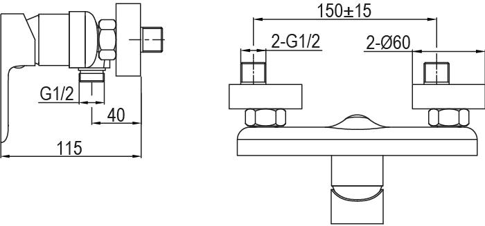 Miješalica za tuš kadu AQG Beta, nadžbukna, krom