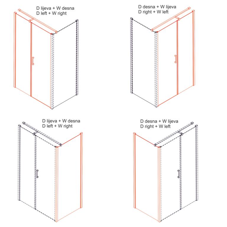 Tuš kabina AQUAESTIL Mars II D+W, okretna vrata i stijena, reljef staklo, crni profil, razne dimenzije